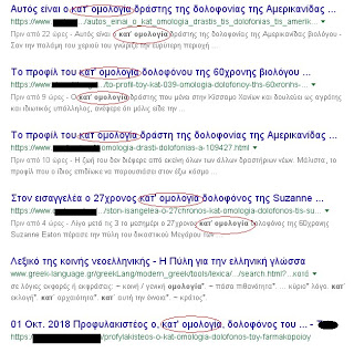 Το ψαχτήρι της Γκουγκλ βρίθει από λανθασμένα «κατ’ ομολογία». Τα βρήκαμε ακόμα και σε κείμενα μεγάλων σε επισκεψιμότητα σάιτ –μερικά από τα οποία ανήκουν σε γνωστές εφημερίδες. Όπως βρήκαμε, βεβαίως, και το σωστό «καθ’ ομοίωση». Όμως, η μεγάλη παρουσία τού λάθους δείχνει πόσο η δημοσιογραφία και οι νεότεροι δημοσιογράφοι έχουν χάσει στις γλωσσικές σταθερές τους.